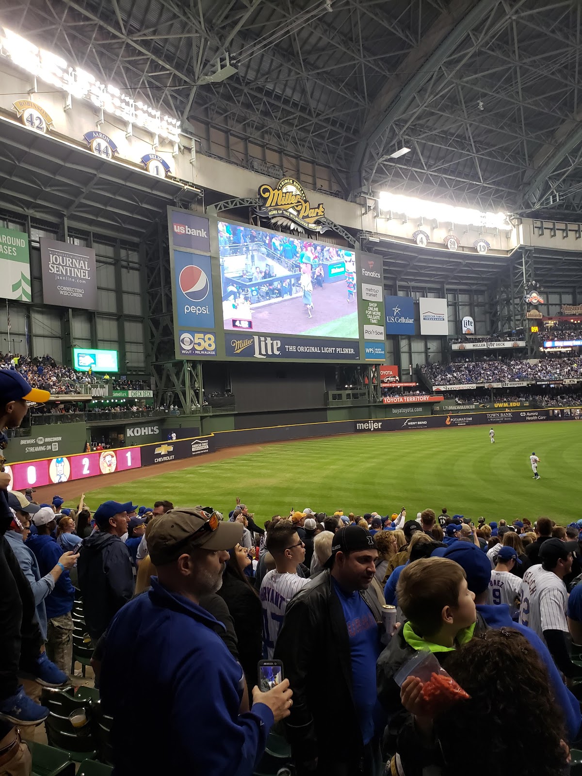 I legit had the best time. I am not a really big baseball fan but I like trying new things and this was more fun than I expected. This game we went to was the Brewers VS Cubs and we did not win. It did not matter though we still had a really good time. Some highlights.